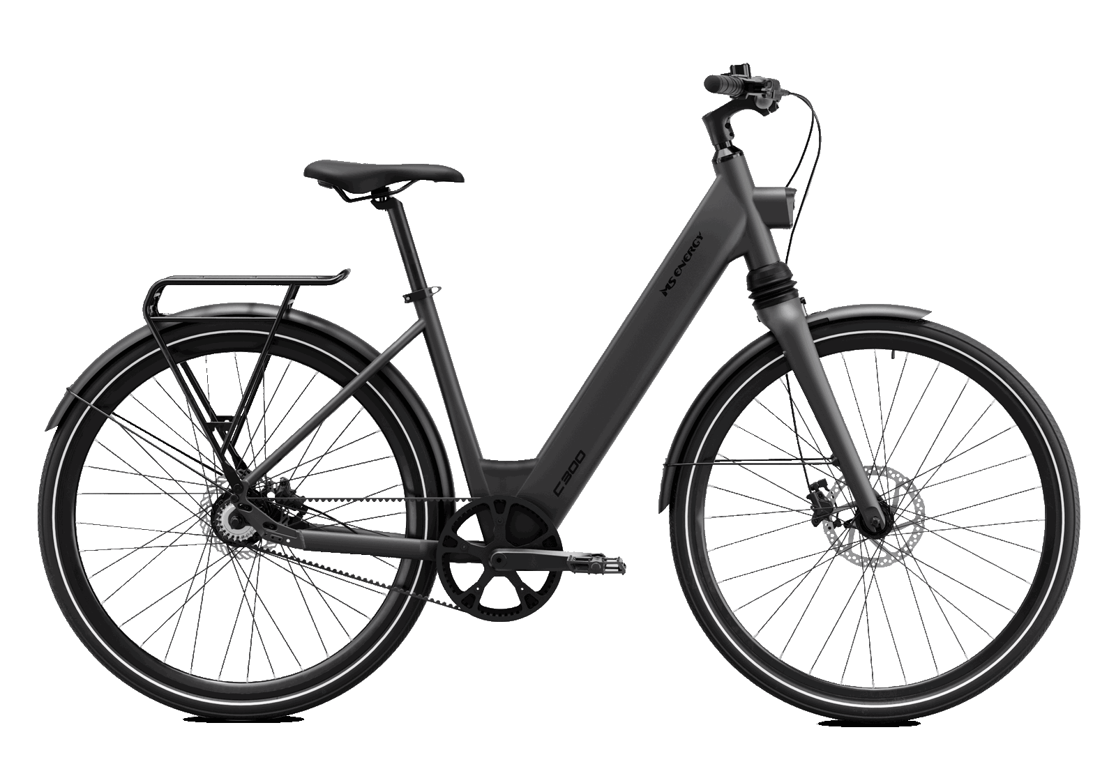 Vaš idealni partner za vožnju gradom – doživite glatku i udobnu vožnju uz MS Energy City eBike 2025. lineup. C300 je lagan (21.5 Kg) ebicikl dizajniran za bezbrižnu gradsku vožnju, maksimalnu udobnost i vrhunske performanse. Pokreće ga fantastičan i lagan Mivice M070 250W stražnji motor koji vuče snagu iz Samsung litij-ionske baterije (36V14.69Ah, 529.2Wh). Zamijenite pedaliranje lancem za glatko pedaliranje s remenskim prijenosom Carbon Gates, koji ne zahtijeva održavanje.